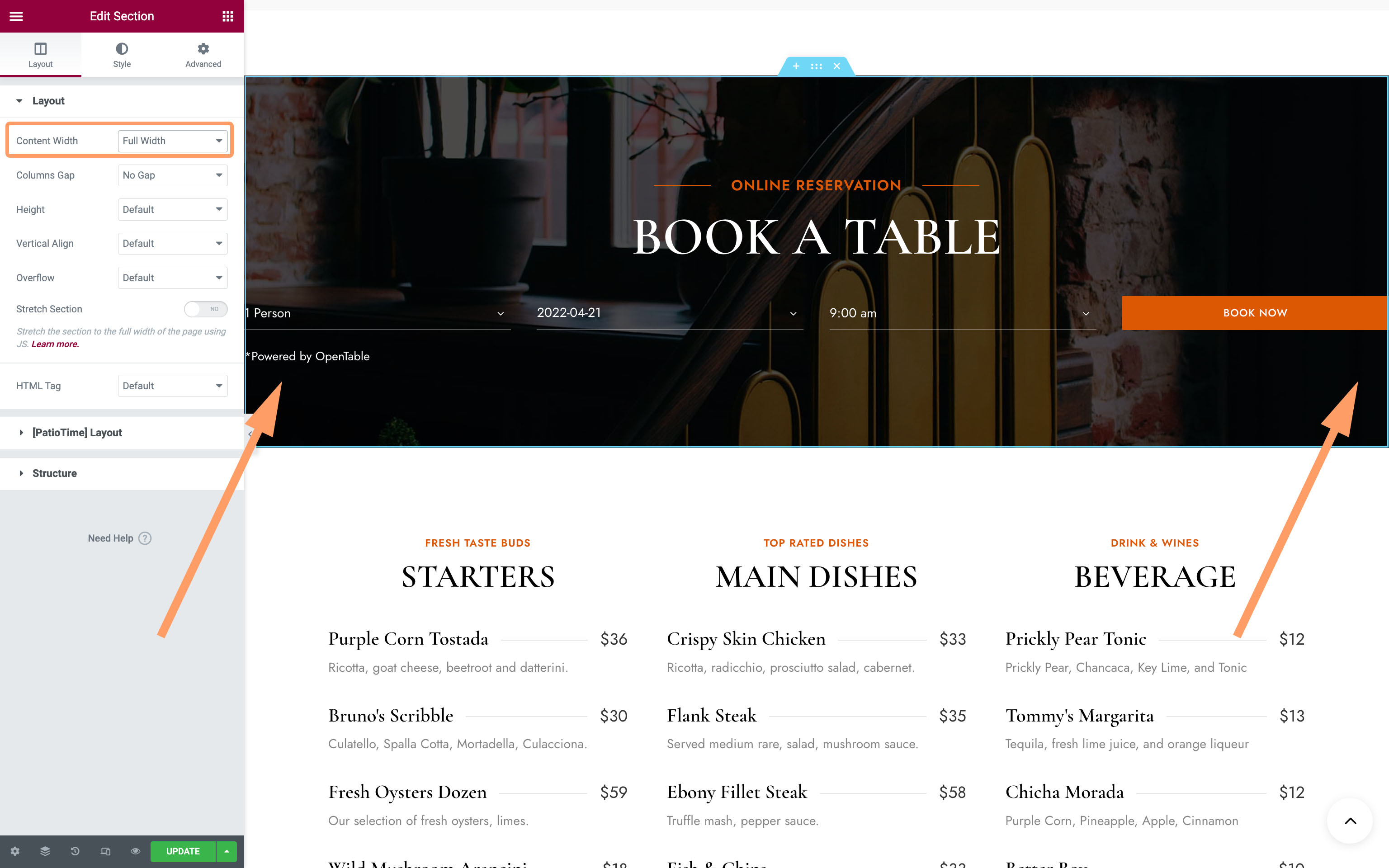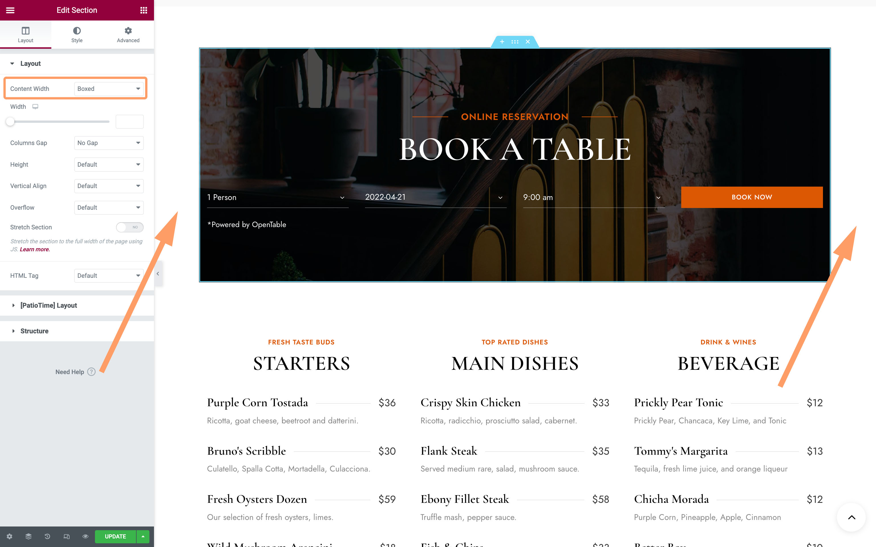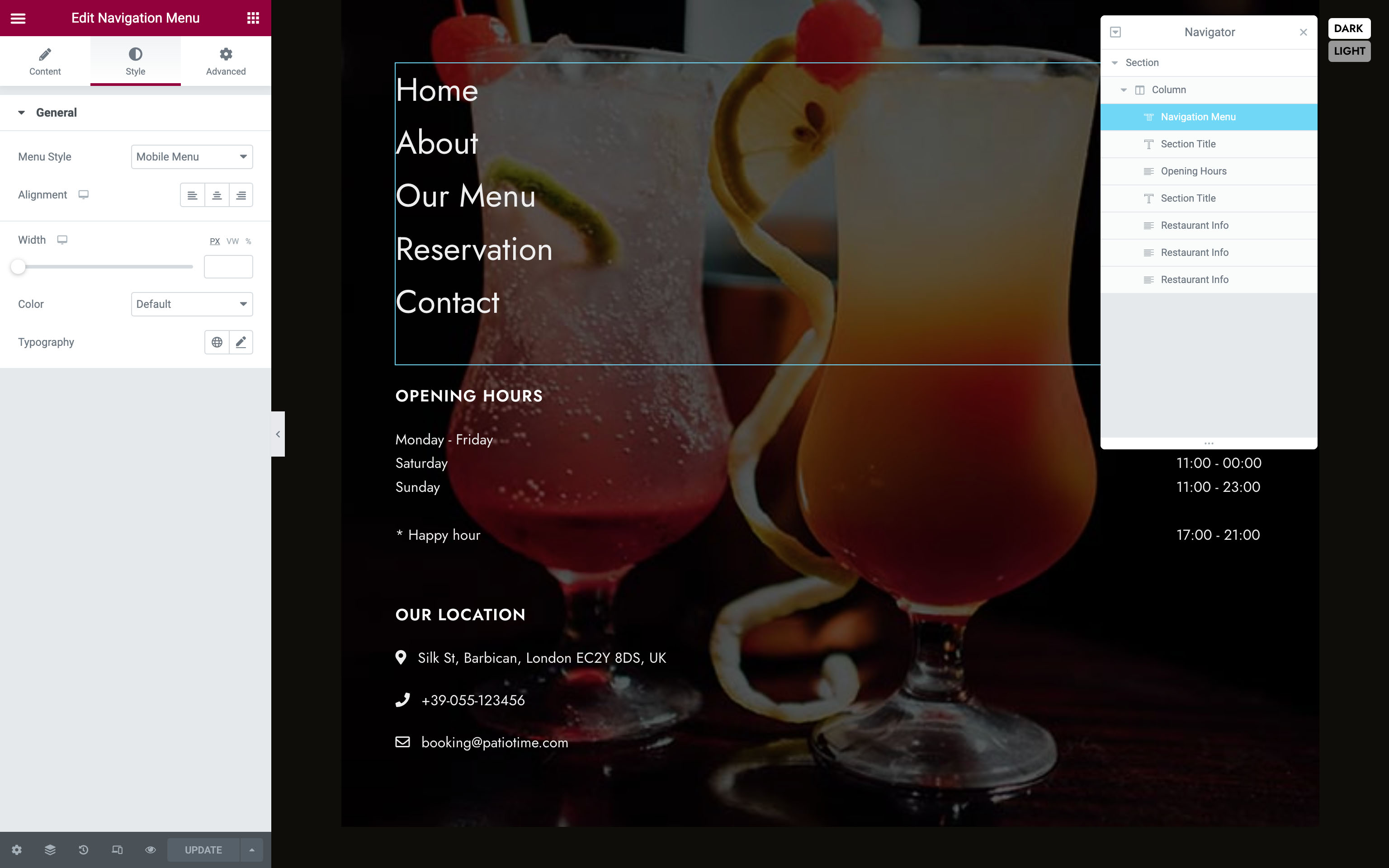 Theme Dashboard Strings - The Restaurant Info & Opening Hours added via Cozy.Stay Dashboard.