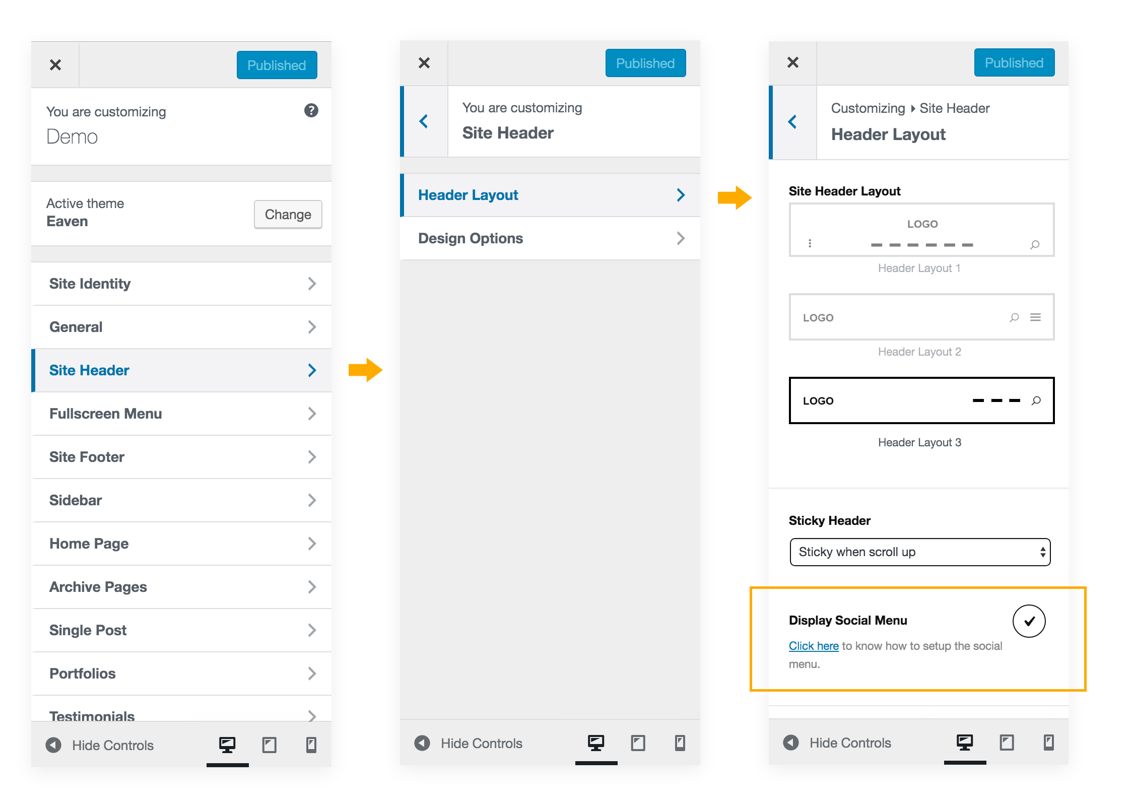 Display social icons in site header