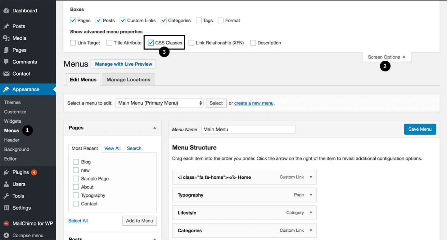 - Go to Appearance > Menus, make sure you are editing the primary menu.