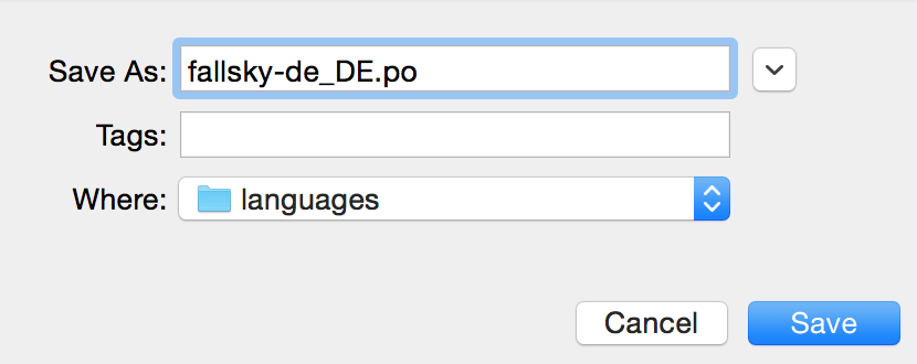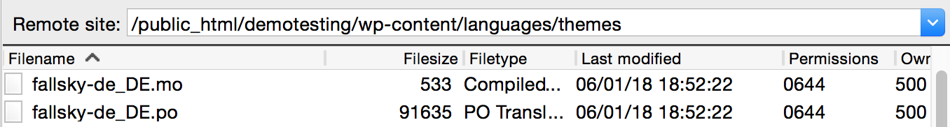 Then you will get 2 files: “eaven-de_DE.po” and “eaven-de_DE.mo”.