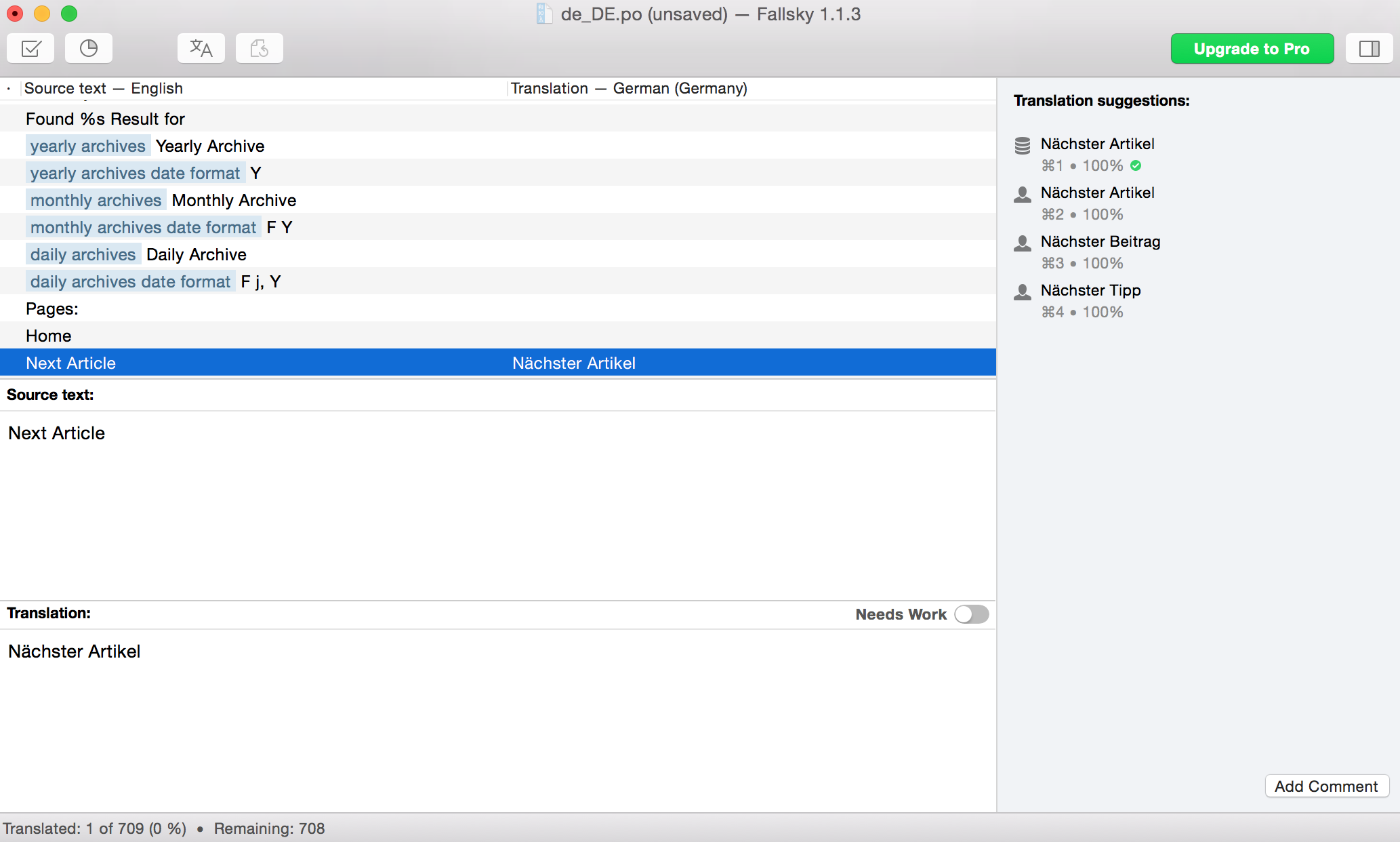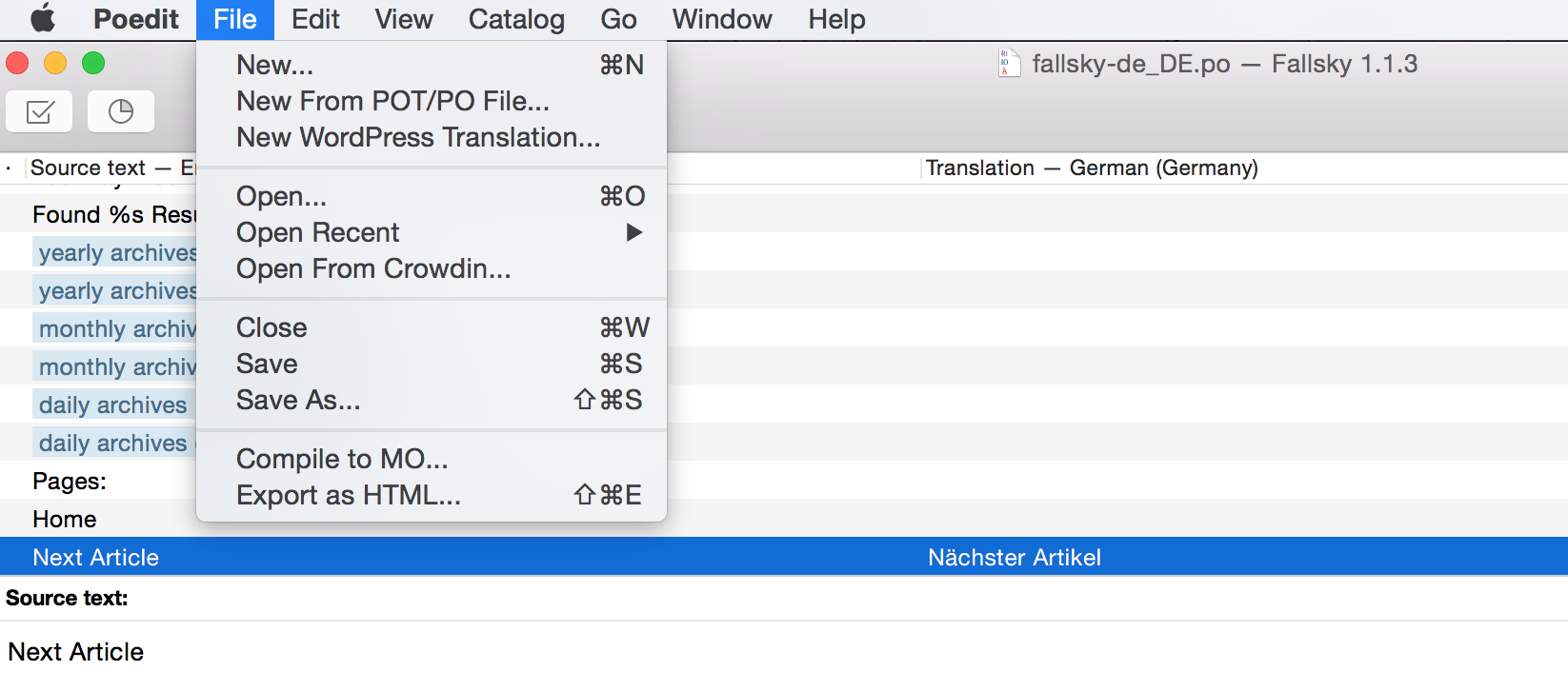 Let’s translate the text “Next Article” into German as a simple example: