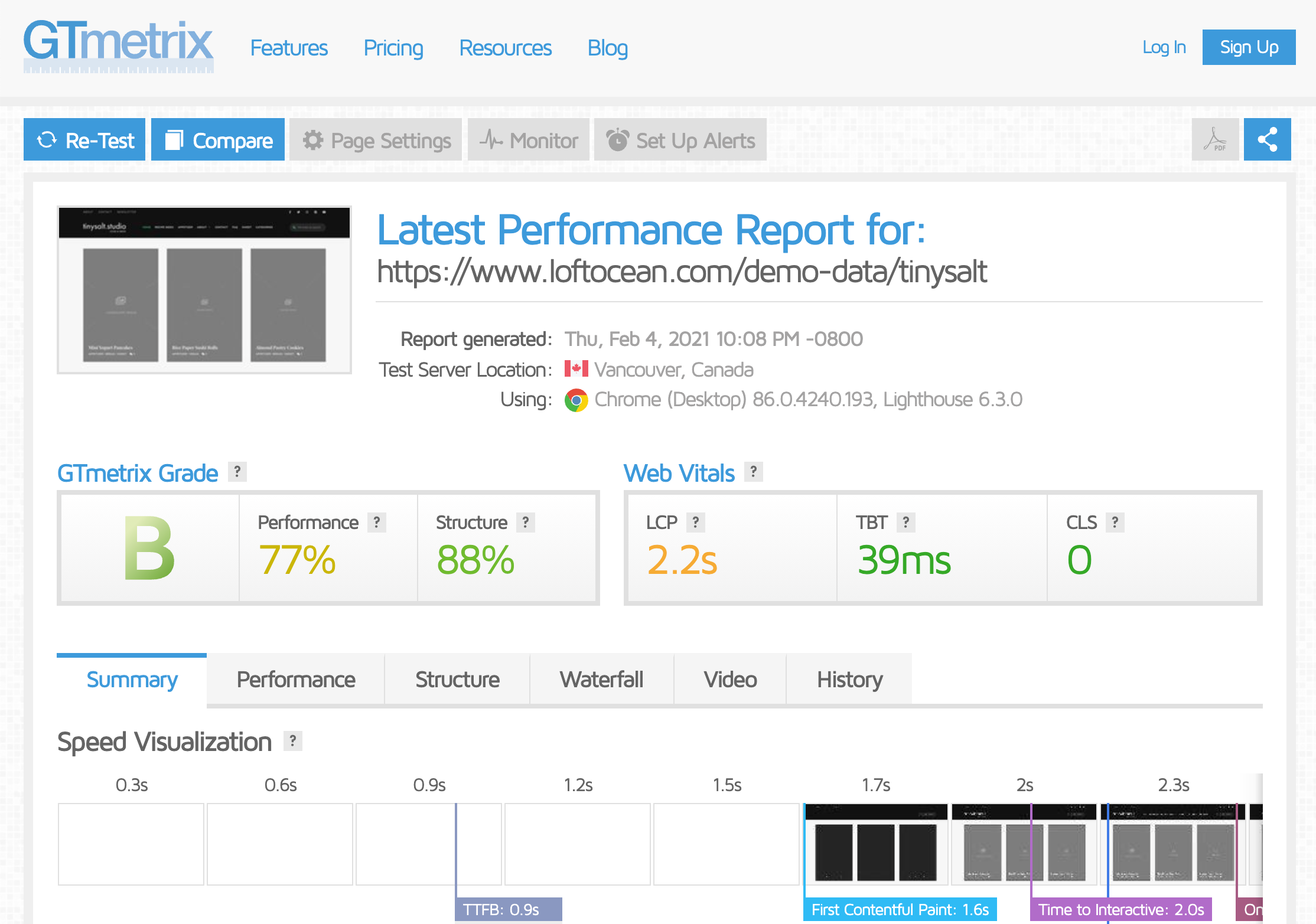 We followed the WordPress development best practices when creating themes, and have optimized TinySalt theme in many ways. You can use TinySalt to create a lightweight recipe blog. But when the content of the page is very rich, the page will also become heavier.